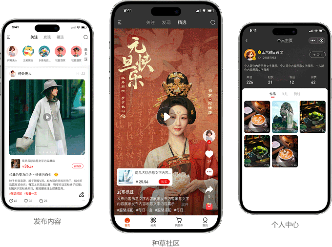 打造垂直内容种草社区,用户和商家可以发布图文、 视频内容,营造内容营销环境